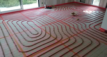 Fluides Energies réalise l'étude de dimensionnement, le plan de tracé (calepinage), l'installation de l'isolant type TMS et des circuits ainsi que la mise en pression du réseau